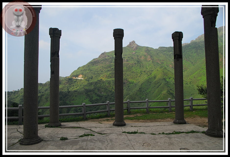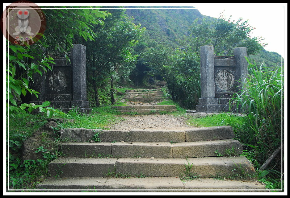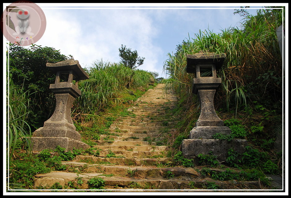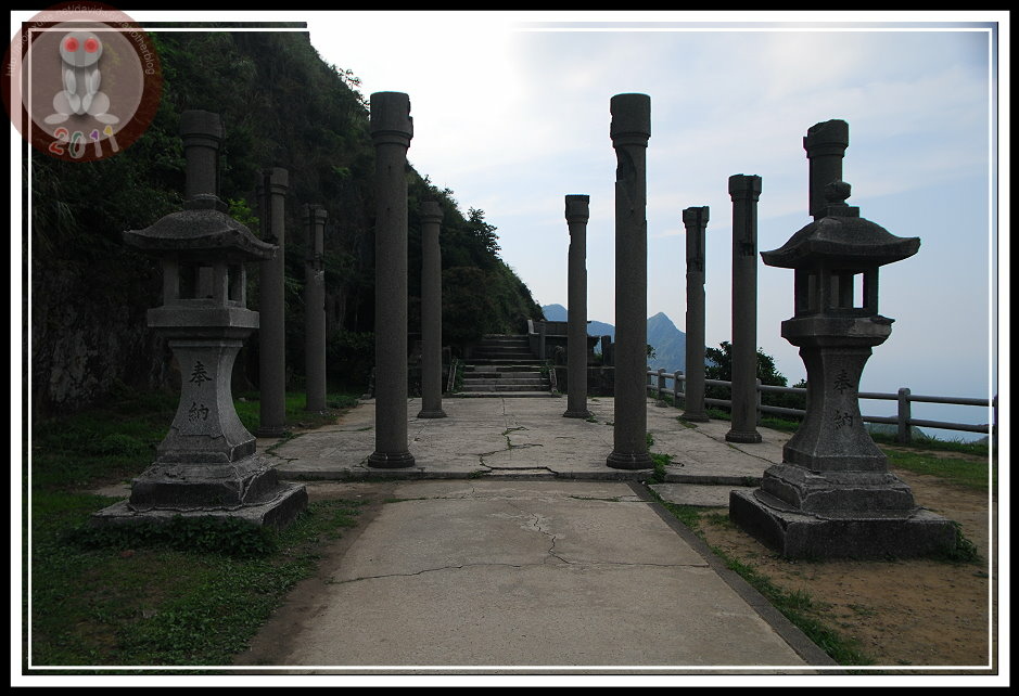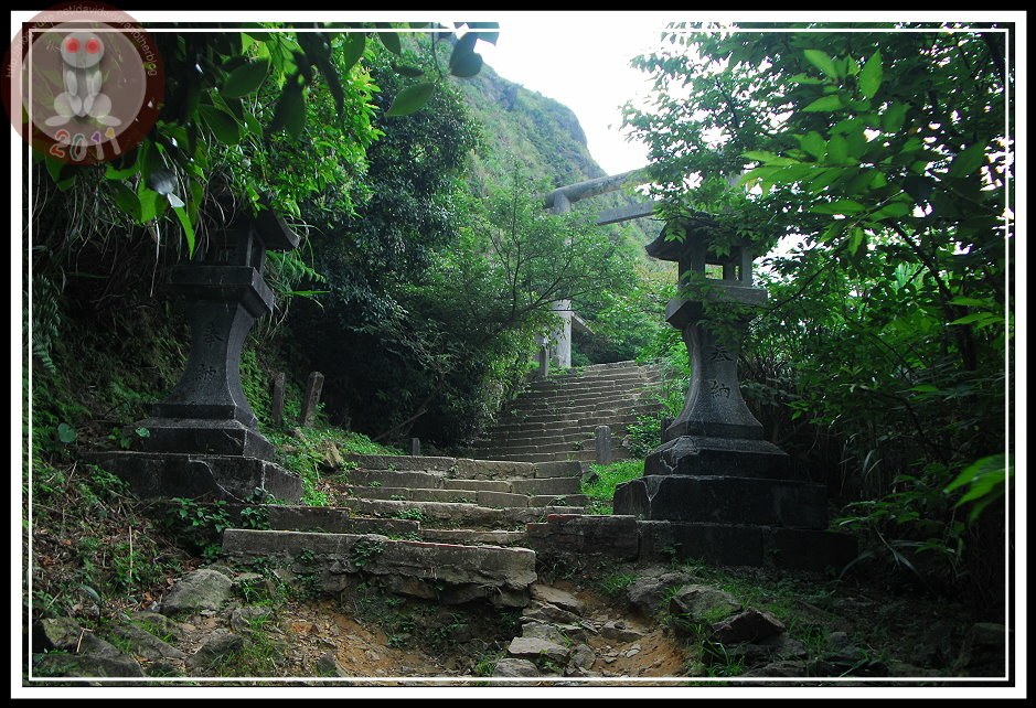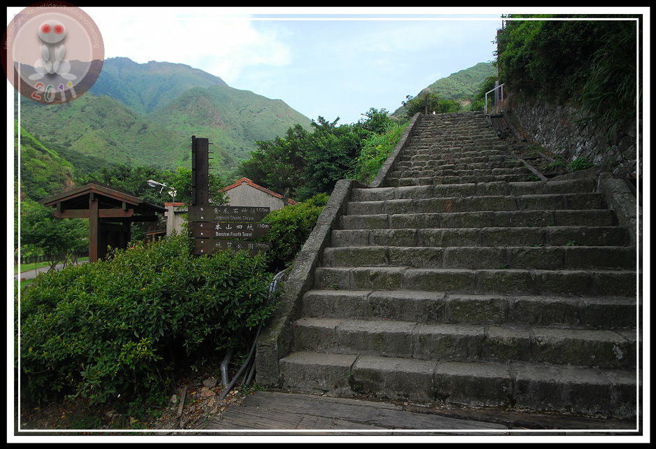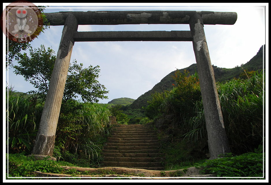 說來好笑,認識金瓜石神社是從電視上提神飲料的搞笑廣告,而且一直以為它坐落在九份山上的乾燥炎熱芒草堆裡。從太子賓館出來,拾階可以到達黃金博物館區的最上層,入口指標「金瓜石神社 600m」...這不措手可得嗎?區區六百公尺?心一橫,立刻放棄園區其他設施,也顧不得太陽已經西斜。