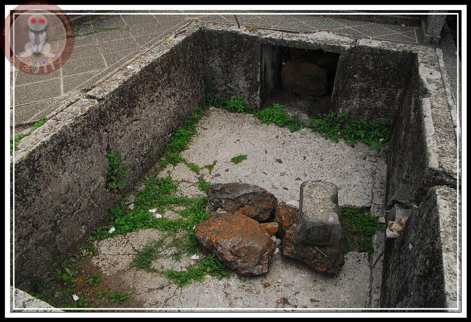 神社已經毀棄,僅留下神社石砌基座與十根徒手無法破壞之石柱。有些石燈籠上的題字可以看出被刻意地淋上水泥,餘下字跡我辨認不出,只有斗大的奉納依舊清楚,我猜那水泥覆蓋的應該是人名吧!