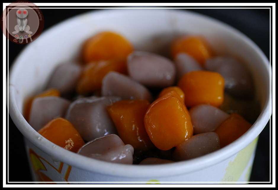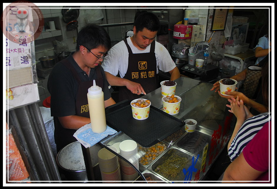 我知道如此代表地方特色的食物勢必有許多種版本傳說,但人們用雙腳投票,甚至在電視上也見過櫃檯後面的先生,所以...不得不停下來,花五十元滿一碗冰芋圓嚐嚐鮮且消消暑氣。有人說:阿柑姨當年為了貼補家用,開了九份第一家芋圓店。其間曾經短暫停業,經過欽賢國中校長的鼓勵,又繼續芋圓生意。直到1990年,侯孝賢來九份拍「悲情城市」,具地方特色才在劇組人員肯定後漸漸打響名氣,終至今日成為九份特色之一。