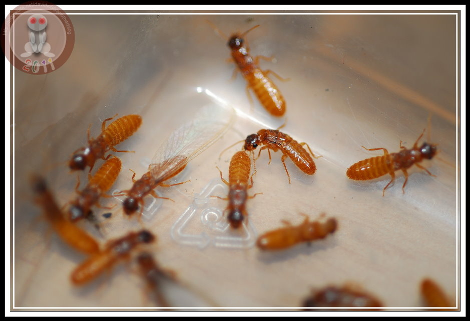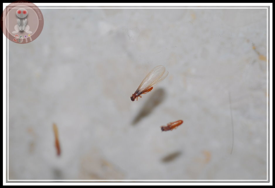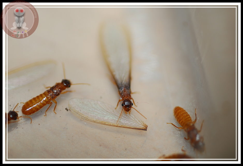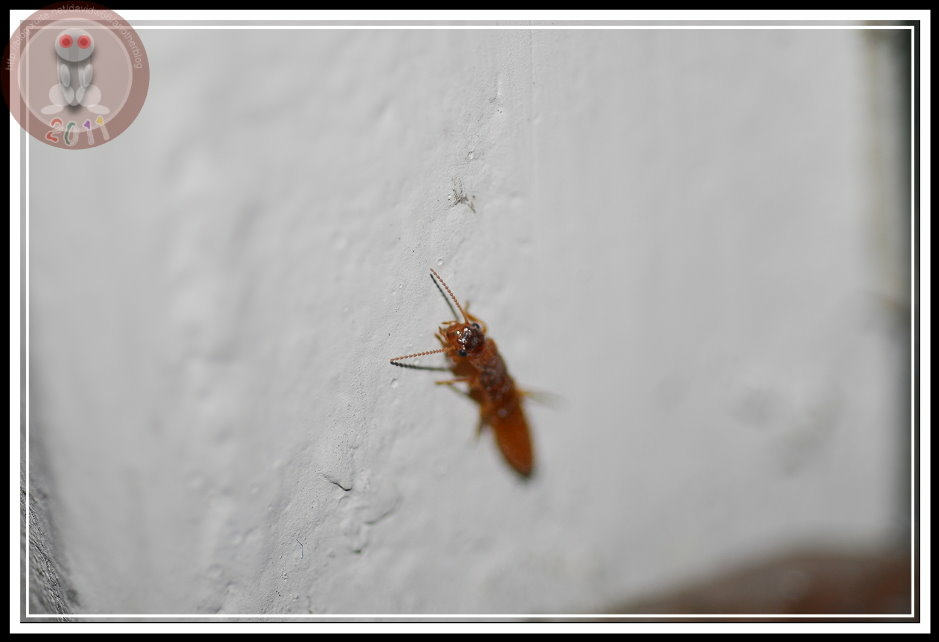 我找了家中的圖鑑,也上網問了 google大神,造訪不下百個網站,就沒有人能清楚的告訴我:這究竟是什麼品種?別告訴我「他是白蟻」,這我也知道。我還知道:白蟻與螞蟻雖都稱蟻,但此蟻非彼蟻,兩者是截然不同的昆蟲。螞蟻屬膜翅目;白蟻屬等翅目,雖然都有類似的分工社會...工蟻、兵蟻、蟻后。在台灣,似乎白蟻的分類研究還是沙漠,或者說尚未有人大規模的進行分類發表。在搜尋引擎上鍵入「白蟻」,你可以有看不完「除蟲公司」的「消滅白蟻」網頁。可惜,大多文抄公,看完一篇完整的介紹,就不必再看下去了。