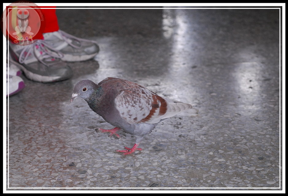回家,直接送往頂樓,再用一把飼料賄賂牠,一方面確定他被關進箱子沒被嚇著;另一方面建立一點「家」的感覺。粉鳥小子毫無異常地在頂頭散步,絲毫沒有驚懼離去的意思。吃罷晚飯,天色暗了,再去探望時粉鳥小子已經不見蹤影。我想,牠應該是找比較舒適的環境休息去了,也許隔天早上會照常出現。萬一,牠跟著住家附近的鴿群而去,那也祝福牠。