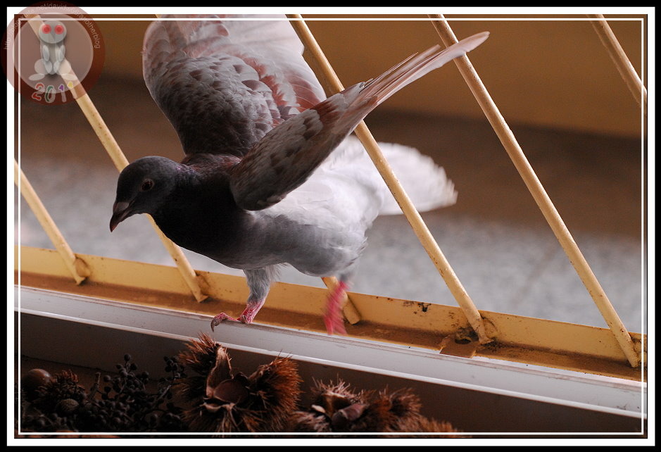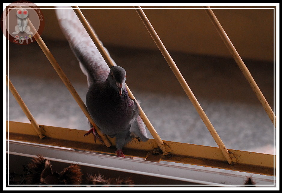 昨天之前,我們只要把牠趕出去後關上門,就可以爭取一下子的安寧。今天他老兄發現新的管道:飛上窗台,先將頭和一邊翅膀擠進鐵窗。站穩了,再縮另外一隻翅膀擠進來,鐵窗再也不是問題。