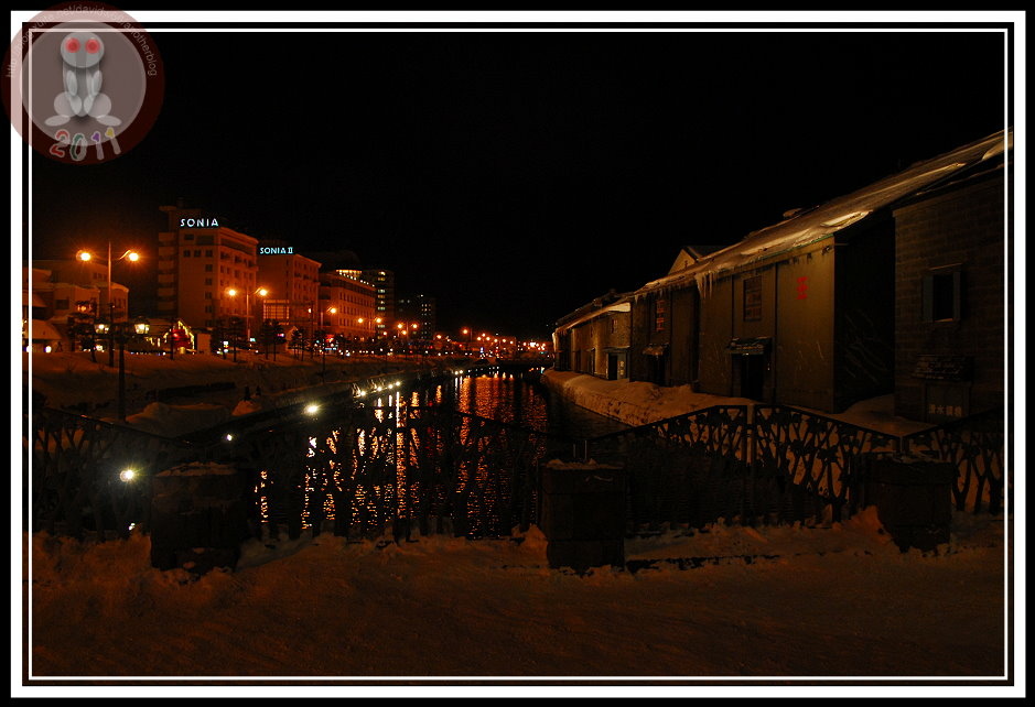 淺草橋邊的溫度計顯示著「-2.5度」,在這裡算暖和的夜晚了。沒了夕陽的小樽運河,在燈光下更顯另一種美,所有人擠在橋邊拍照,僅寥寥幾人沿著步道走去。看著對岸的倉庫,門裡面能看見一間間餐廳,卻看出一種感覺,似乎小時候在車站、在林管處就曾經見過這些相仿的建築。尤其鉛灰色鐵門敞開,只是門上的字變成「小樽」、「株式會社」如此字眼而已。