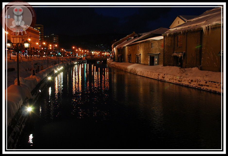 回到台灣溫習北海道地圖,才發現導遊其實帶著我們上上下下遊覽巴士,就在小小的區域轉來繞去。如果少在商品街繞一點,或者可以慢慢散步過來,所費時間不多,卻能夠欣賞更多的小樽美麗的建築與景致。到運河已經入夜,我們沒有機會見到白天的運河,在「出拔小路」對面走過來,匆匆忙忙,多看幾眼那建築,想看看「千尋」或者「白龍」會不會忽然出現在櫃檯?來到小樽,我明白一件事,宮崎駿動畫裡很歐洲的事物,其實描繪的是20世紀初的日本...西方與日本的交會就在北海道、在小樽被保留下來。