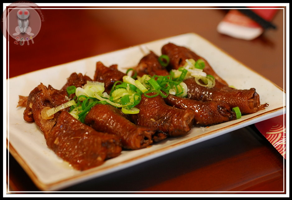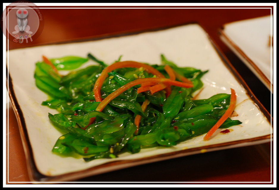雞腳魯得入味,是先去骨,入口除了鹹中帶甜,魯香味中還嚼到了筋的咬勁;海帶芽與一般麵食館裡的不同,切起來有葉形,醃漬過,帶有一點日式手法...我不知道那叫什麼?像是菜市場裡有一種日本進口的海菜,也醃漬得綠得有點可怕,吃起來又順口。