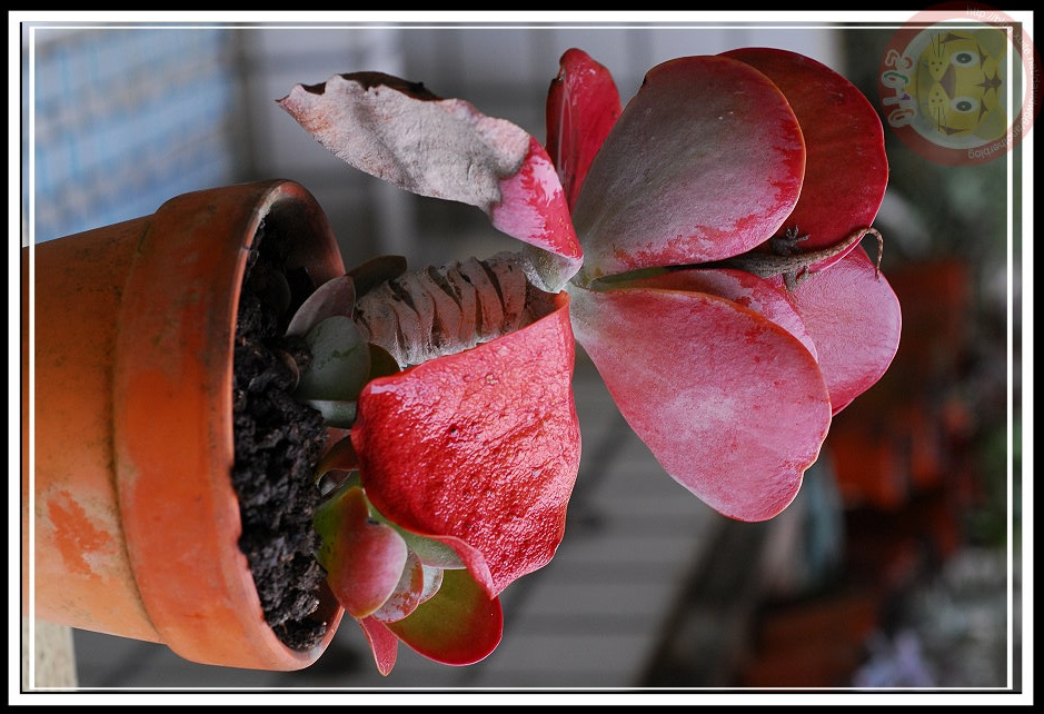 有人說:唐印上了高山接受日照後會全株變紅,煞是好看。當然,我不可能為了一睹唐印火紅的一身,專程將他送到高山上寄養。他也只能蹲在辦公室外面的女兒牆上活著,想到的時候澆澆水、轉轉方向,若沒有被屋簷滴下來的雨水給侵蝕腐爛,那他自然有一席之地。