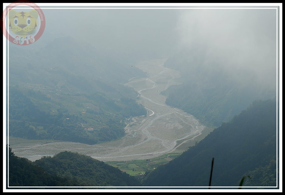 二個小時...慢慢邊走邊聊天約可以通過古戰場紀念碑、石門、好漢波...然後接上天然湖來的階梯,然後繞過慶榮坡、看見「馬拉邦山戰諸地」的石碑和「一等三角點」基石。想在馬拉邦山頂欣賞好風景,除了時間挑對,還得靠一點點運氣。運氣不好,白茫茫一片,只有圍繞著平台的褐色欄杆可供瞻仰;運氣不錯,俯瞰大安溪河谷、雪山聖稜線、台灣海峽...歷歷可數。這回上山...運氣中等,有遠景但罩著薄翳,應該說「聊勝於無」吧!