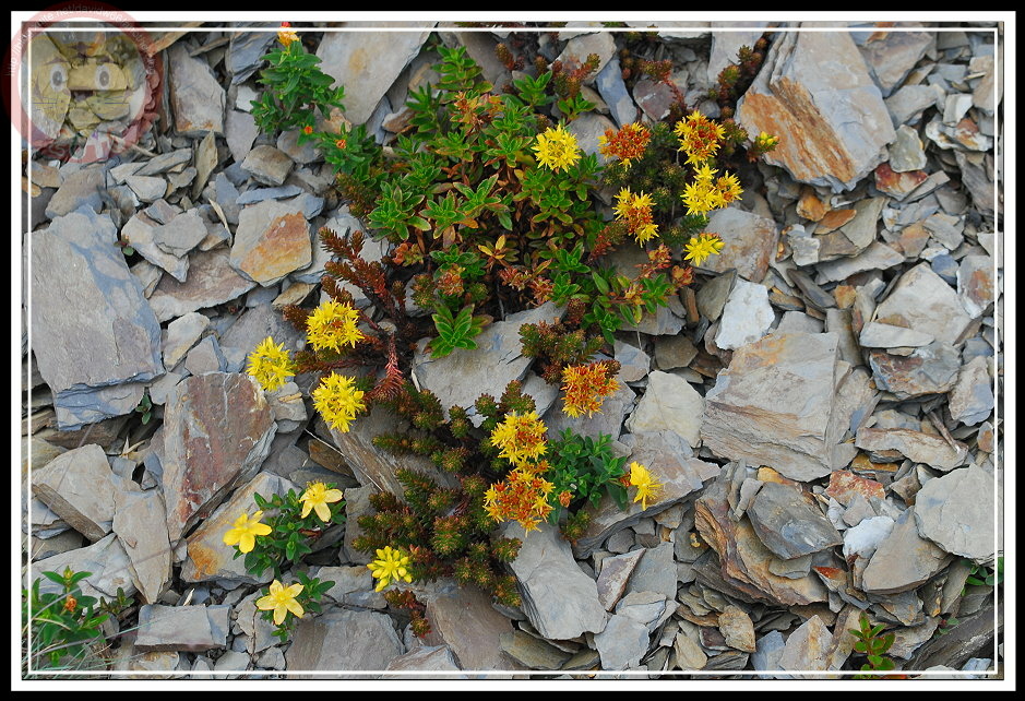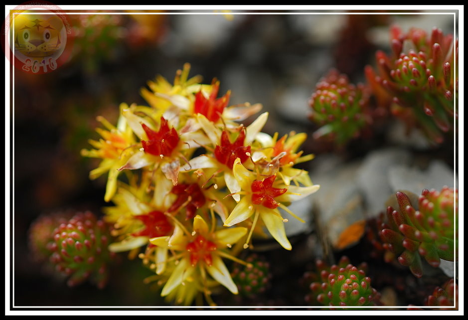 幾年前在昆陽停車的稜線碎石坡上就曾經見識過玉山佛甲草黃花的威力,我的眼光久久不能移開,唯有跨過公路,四足並用地趴在土坡上才能解癮。那時候,手上的機器青黃不接,用一部300萬像素的富士303拍,那照片要說是雞肋也可以。當時,我驚異的是,竟然在台灣的高山上有如此美麗的多肉植物,而且點醒我所知多肉植物多半是舶來品的認知。招九晚五的上班族沒住在山上,要欣賞野花狂野的綻放必須靠運氣,今年...算是「出大運」。玉山佛甲草不僅是「大發生」,在碎石坡上更是俯拾皆是,花開得連碎石坡都有氣質起來。