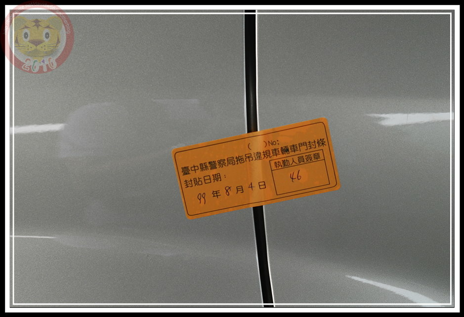 到車子旁邊,先環車子檢查一周,五個門都被貼上封條,動手去摳,已經不是以前那種需要到洗車廠處理的紙質貼紙了,小心翼翼可以不留殘膠地取下來。我邊撕,心裡嘀咕著「懶得走到停車場竟然代價慘痛...」;心想「下次不會再來了」,索性再拿起相機「拍照留念」,不急著走,反正錢都已經繳了。