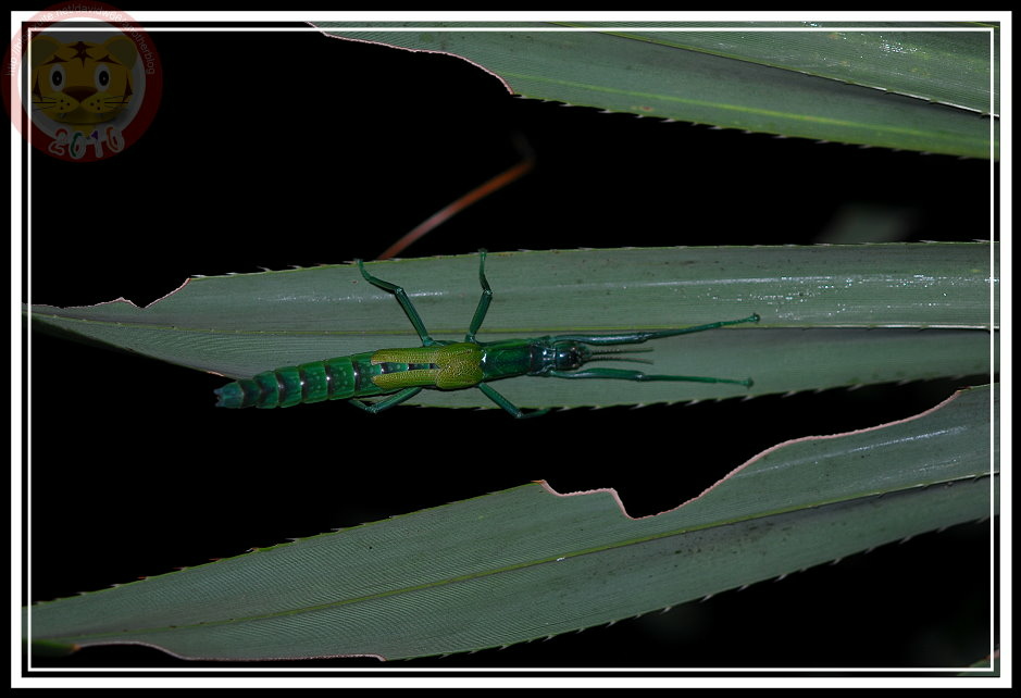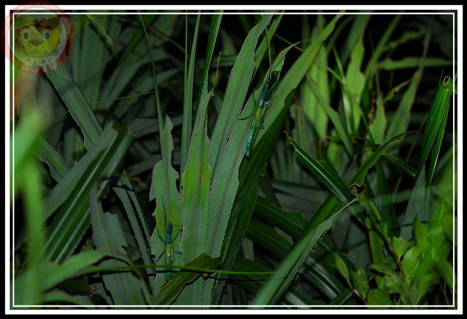 本來以為綠島的津田氏大頭竹節蟲必須翻山越嶺、挑燈夜戰地尋找,也許一個晚上覓得一隻就「十分幸運」。蘇先生帶我們到梅花鹿復育區附近林投樹叢,才發現這津田氏大頭竹節蟲就在路邊大啦啦地用餐,而且有大規模群聚現象,與一般竹節蟲獨來獨往有所不同。這麼集中的族群,我也只在東北海岸遇過其他品種而已。