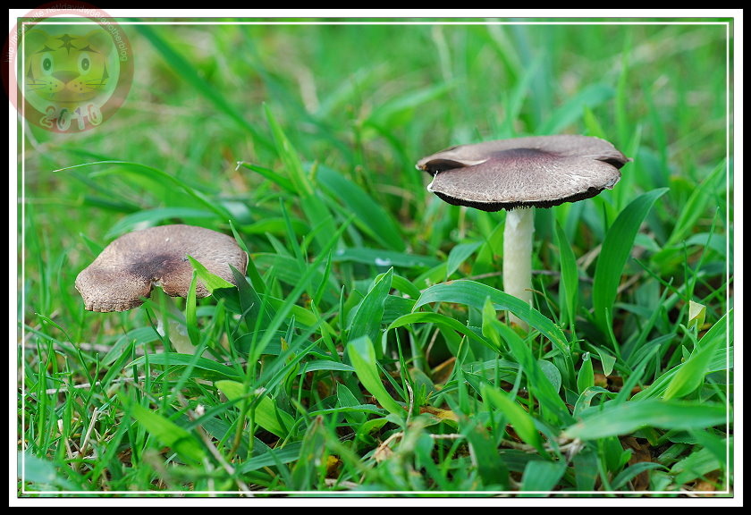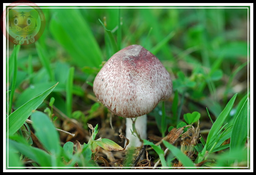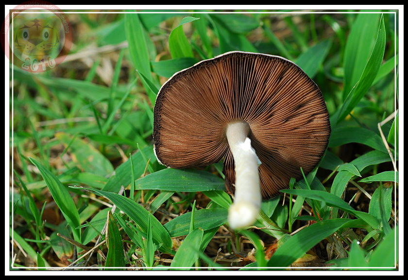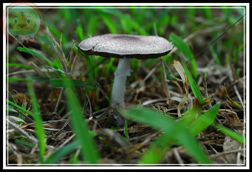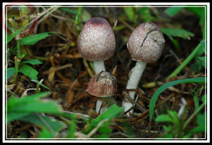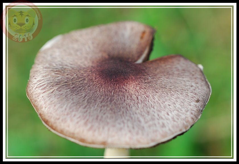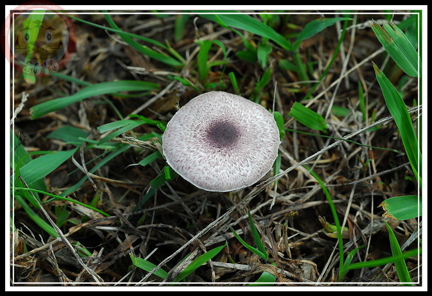 我真的無法肯定他是「暗鱗環柄菇」,可是就所有菇體特徵,也只有暗鱗環柄菇的敘述是「有暗紫色角麟,且於中心匯聚成斑」。圖片裡的照片早已經「過度熟化」,傘蓋上翻,有點像被菜刀切過,即將下鍋的香菇。不過,就菇柄的環,與剛冒頭的傘蓋,是還有幾分神似「環柄菇」。