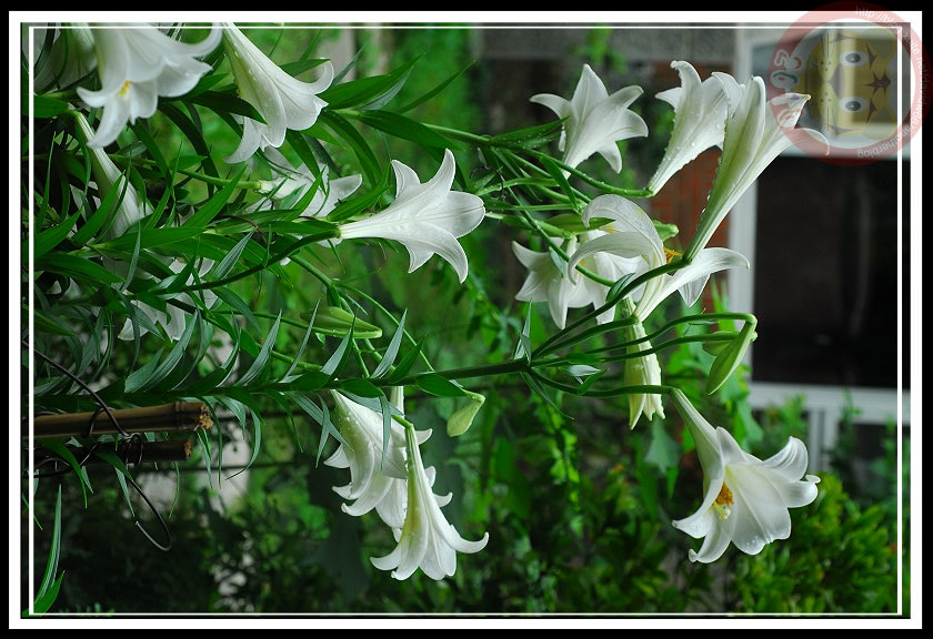 網路上寫百合的文章何其多,拍百合的照片更不勝枚舉,尤其前陣子你如果來過東豐自行車道,一定曾經被阿伯老屋前白皙的鐵炮百合吸引過。那天,我們專程去看百合,雖然沒有遇見阿伯,但光駐足片刻就可以欣賞到各式各樣賞百合、說百合的模樣。最常見人們將腳踏車停下來,高舉著相機嘟起嘴巴、仰著頭拍,這是時下年輕人特殊的美感;懶一點的人,墊著腳尖、屁股捨不得離開椅墊,瞅著相機螢幕按下快門,相信那照片鐵定東倒西歪,不過也算是「到此一遊」。拍著照片、嘴裡嚷著「鐵炮百合」...這是最正確的稱法,滿分一百;若是念著「台灣百合」,那算錯一半,給五十分;聰明一點的少說少錯,光說「這是百合」,那不能說你錯,給個八十分,二十分扣下來,當做老師給自己的交代;最最不能原諒的是那個呼嘯而過,連煞車都沒啦的中年男子:「喇叭花ㄟ!」幸好他沒停下來交卷,否則「死當」免不了,植物認識不清,連一點起碼的風雅素養都沒有。