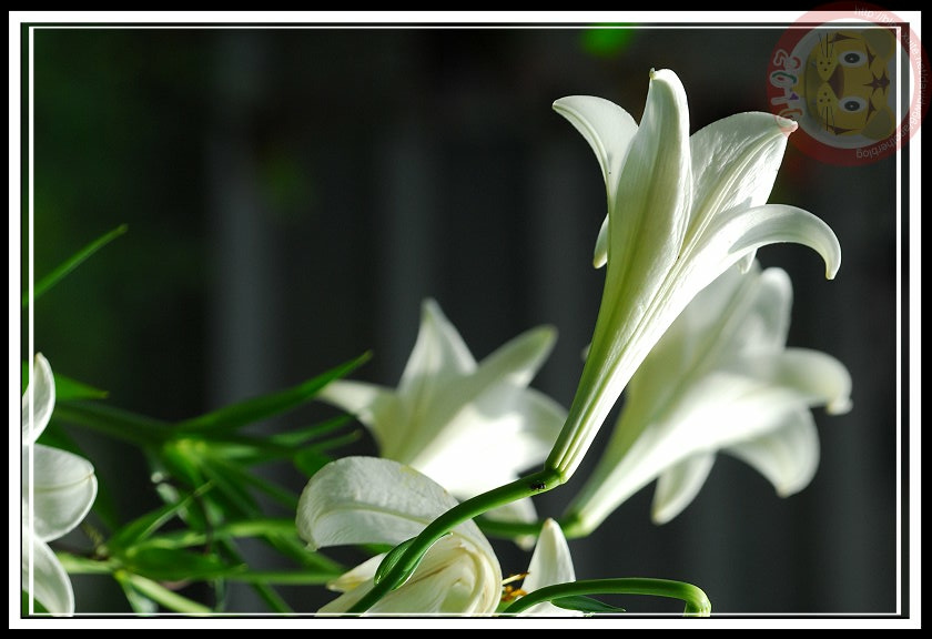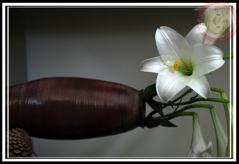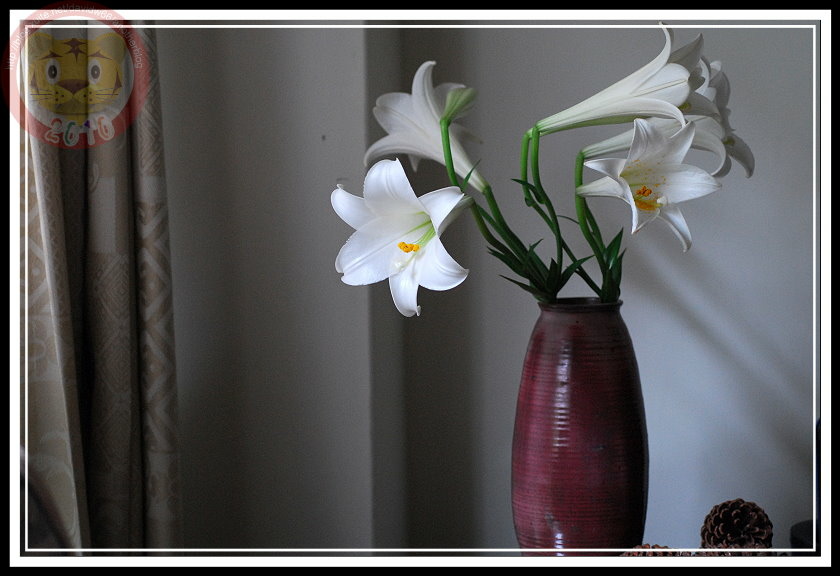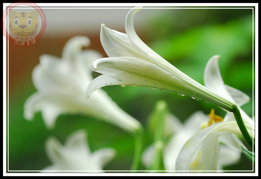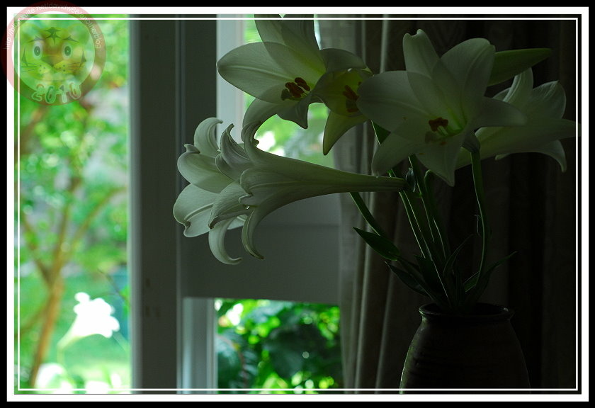 阿伯給的種球果然不負眾望,今年成熟開花,且在4月雨天裡達到最盛。白色的百合花瓣垂著雨珠,在micro鏡頭裡晶瑩剔透,與後來幾天陽光下的模樣各具風情。坐在家裡客廳的落地窗前,就可以欣賞美美的「阿伯的鐵炮百合」。