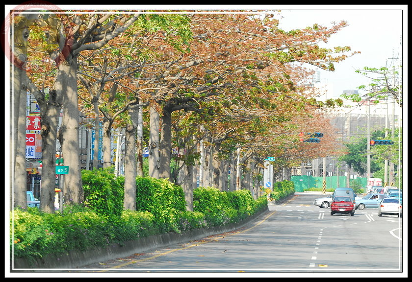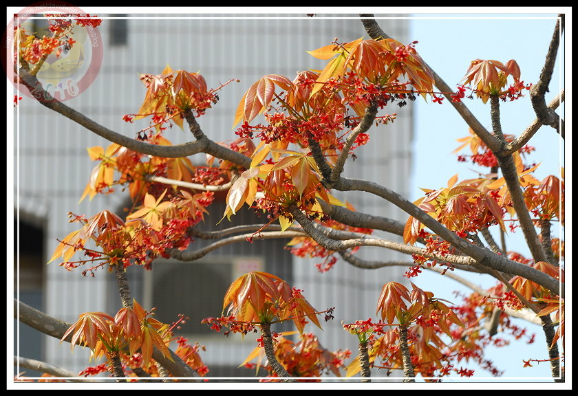 趁著天氣好,在「都會假期」門口以 200mm micro 拍花,要到上車水馬龍令人膽顫,但觀察的慾望驅使著。這幾天,花更盛開,清明前後的雨也打落不少,沿著安全島鋪成花道。蘋婆的花紅,嫩葉也紅,再加上頗具早形的枝幹,讓早上十點鐘的豐勢、圓環北路更具風情。