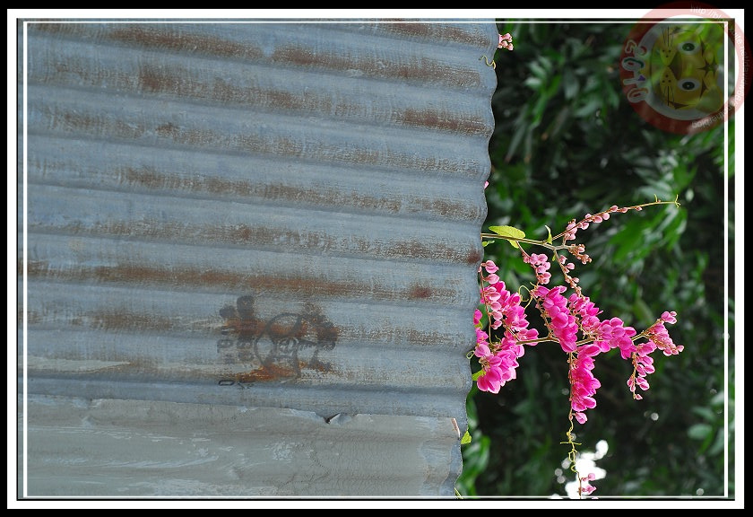 第一次見到這花,在豐原三民路附近的老宅子裡,從紅磚牆隱隱約約可以看見芒草叢,是幢久無人居的日式建築,她攀上房子也爬上旁邊的大樹,不仔細觀察還以為是大樹開花。第二次遇見,在屏東的內埔老街的清河診所,老診所磨石的繡面旁一小塊鐵欄杆圍著的土地,雜草肥美,而他就趴在欄杆上,粉紅色的花朵晃蕩晃蕩著。逼得我非找出她的名字不可,是因為我在神岡大夫第附近的老宅又看見她,雖然土牆傾圮,主人用鐵皮隨意圍起來,她就從上方慵懶地斜倚著,將心形且有明顯皺摺的葉子與花垂將出來...美豔依舊,也終於讓我卯足勁地查閱資料。
