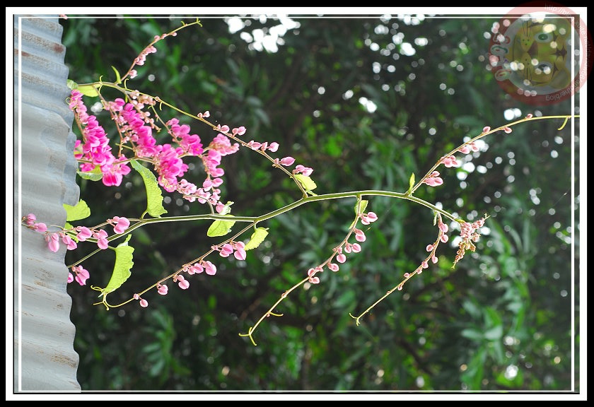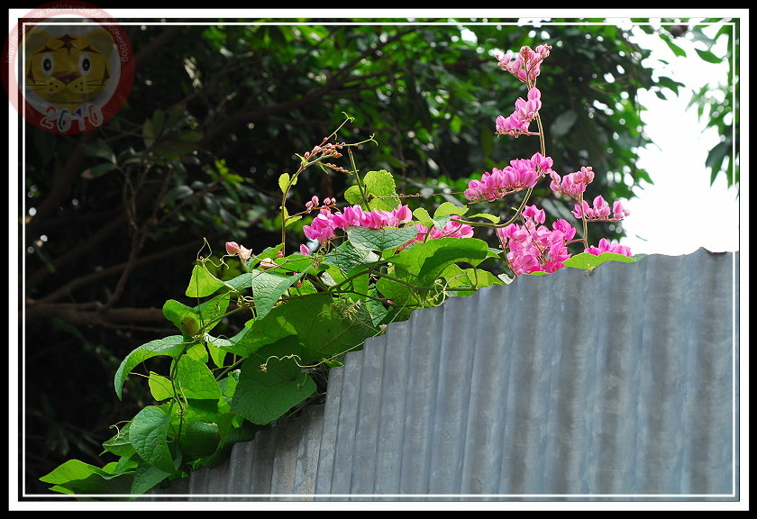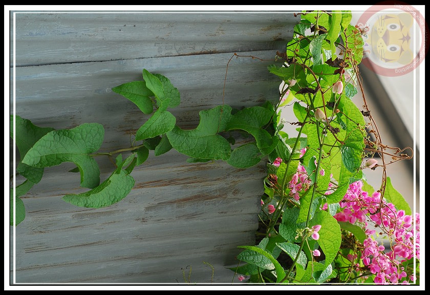 原來她叫「珊瑚藤」,書說她春末至秋季為花期,有「藤中之后」美名,原產墨西哥,1913年由日本人自澳洲引進,喜愛陽光。這也難怪他老是在老房子周圍出現,一方面它應該是那年代流行的園藝植物,同時也只有那年代的房子可以擁有滿足珊瑚藤旺盛生命力的花架子;有人說她的小花遠看像珊瑚,但我瞅了半天,只能嘀咕「這是哪門子的珊瑚?」也別怪我猜不出她的名字。