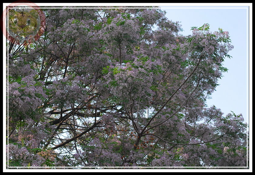 台灣有好多花值得一提,要是有人將之加入商業元素,就會發現她們其實一直在我們生活週遭,只是沒幸運地受到青睞,像是苗栗的桐花就是一例。你有沒有發現最近苦楝開得蠻誇張的,尤其在經過春天豐潤的雨水、充足的陽光之後。在郊外,其實只要細心觀察,苦楝在豐原地區分布密集的程度與野桐們不相上下,尤其小紫花趁著白領巾灑一些陽光之後,要不注意都難。這一棵得天獨厚,長在三社路與大富路交叉口的高速公路邊坡上,幸運的獨立樹沒有其他同伴,專享空間、陽光,所以滿樹紫花甚至不帶一絲綠來回報。