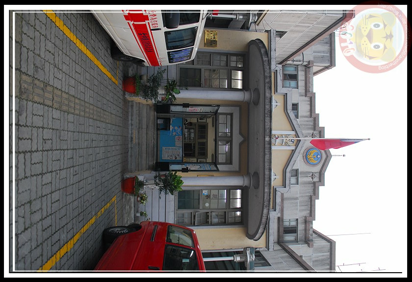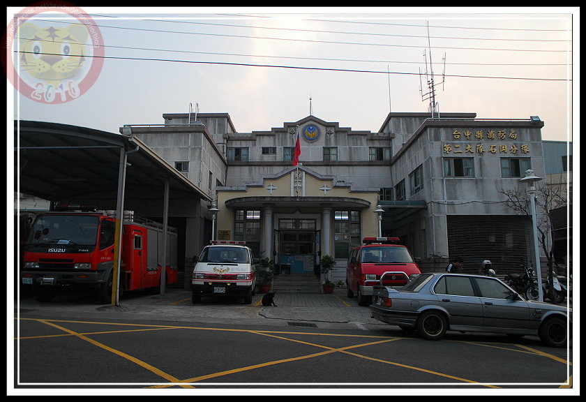 我不是要拍消防車,而是「消防隊」。石岡消防分隊在進石岡市區被地震撕裂的隆起處,門前停了幾部消防車,目標明顯到想錯過都很難。但如果不仔細觀察,你會問:「現代化建築物有什麼好拍的?」定下睛來,會發現新穎的消防隊房舍圍繞著一幢老建物而聳立。基本上,老建物是獨立存在的,而且消防隊的值班台就在矮小的屋子裡,後面新舊建築物的大門各自獨立、比鄰而居。