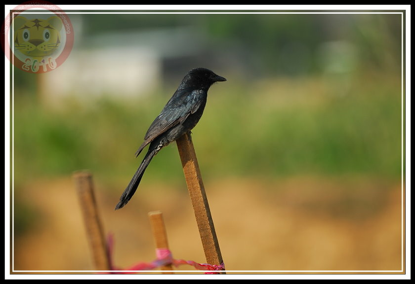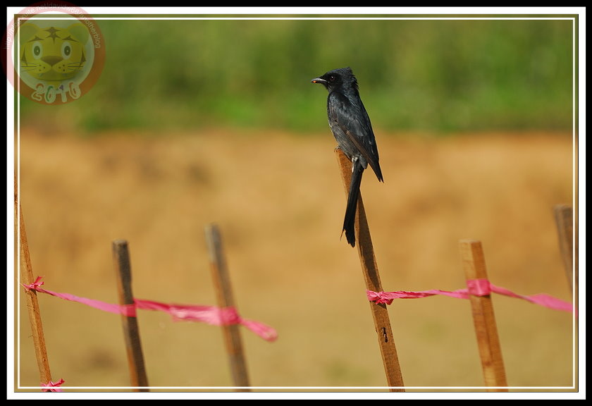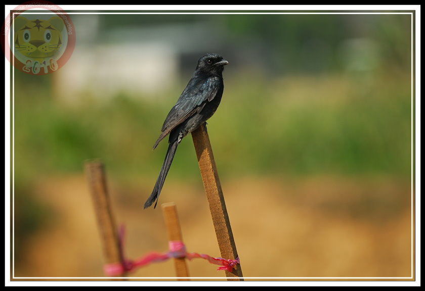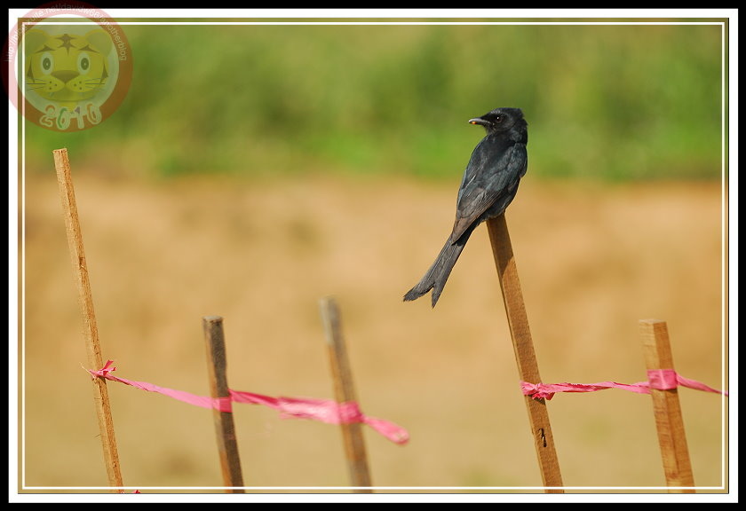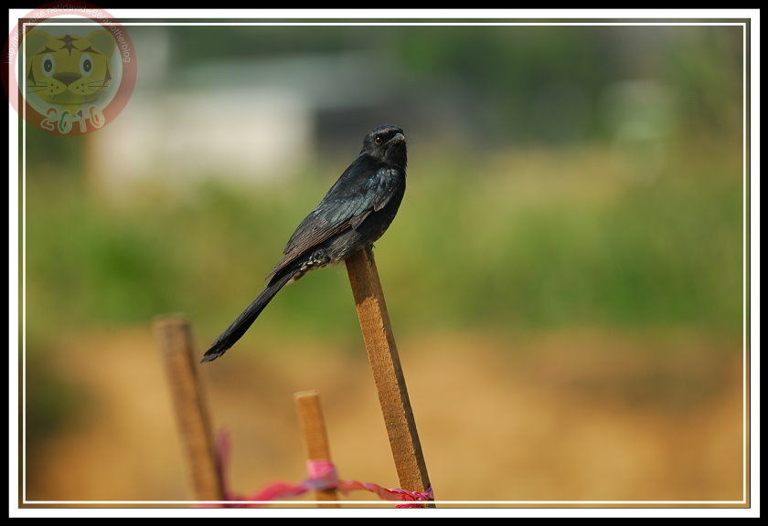 大捲尾可以容忍人類接近到何種程度?這是以200mm鏡頭拉近拍攝,實際上放低姿勢、緩慢前進,它讓我接近到三、四公尺之譜。難得的是,這隻大捲尾站在支架上,不時倨高監視著我。直到我跨進她的安全界線,才張開翅膀,以波浪狀路線下枝架,站在多幾公尺的位置繼續觀察著我。