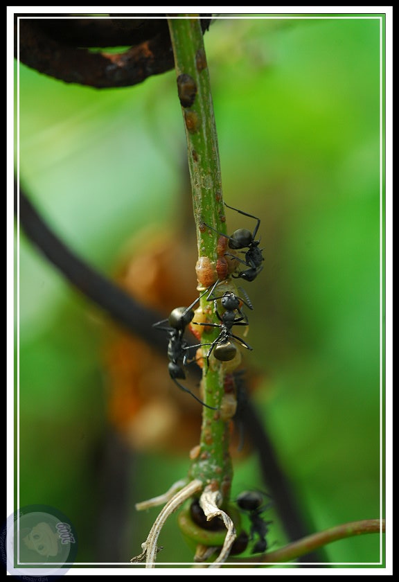 也因為在野外,所以沒拿牙刷對付牠們,只是拿相機留下證據。你看,襯景的綠搭配瓜藤、螞蟻和介殼蟲沒那麼噁心了吧,而且還透著一絲絲的美感呢!