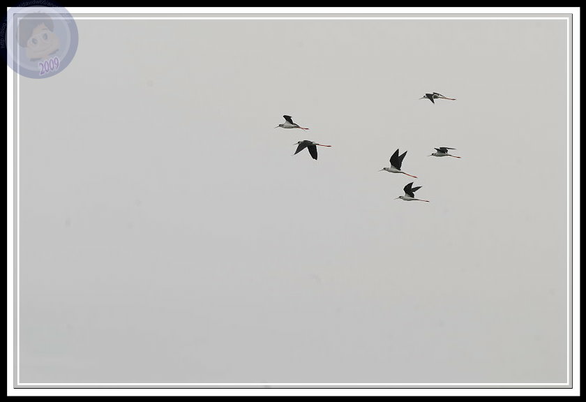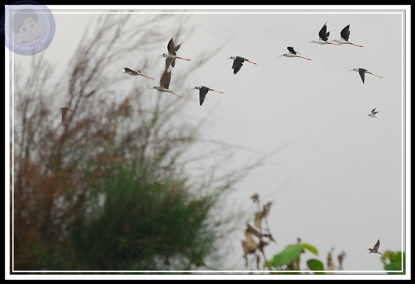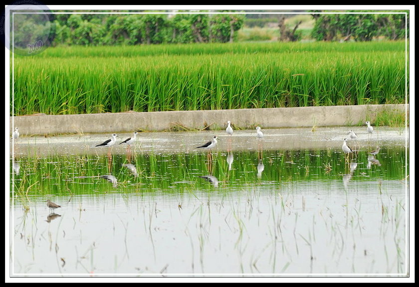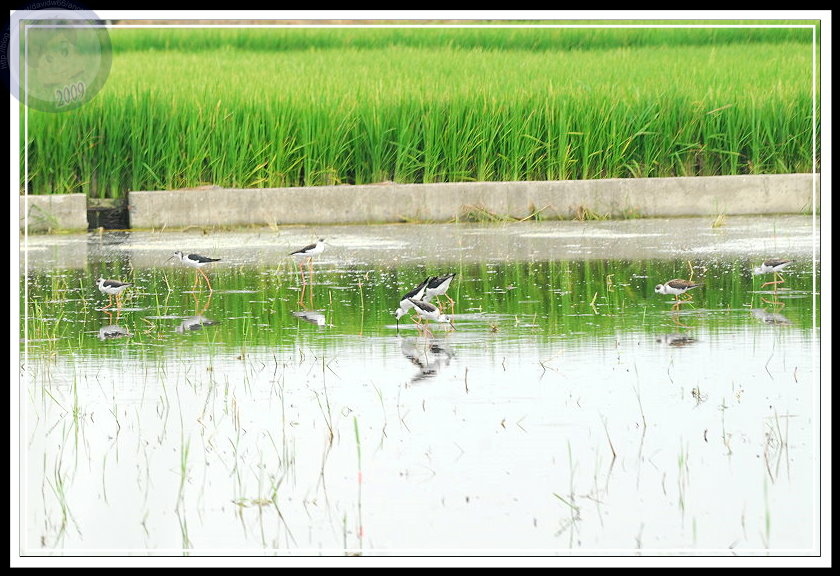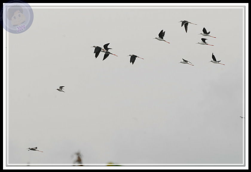 不小心再水田邊看見一群高蹺鷸,高蹺鷸是冬候鳥,莫非是前來告訴我們...「冬天來了!」水鳥總是相當機警,遠遠的在水田那邊,差點就掉出鏡頭之外的距離,但他還是能注意我已經下車,一下子跑個精光。