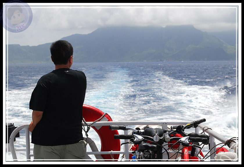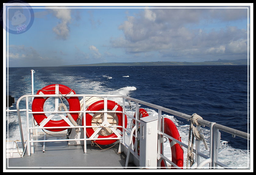 回程,甲板上多了無精打采、力氣用盡的人們,面對蘭嶼島還是猛按著快門,想抓住最後一絲絲...。回台灣不知道是不是順著海潮?還是心理作用?還是船長為了趕回被拖延的半個小時而飆船?感覺上快了許多。