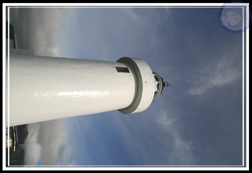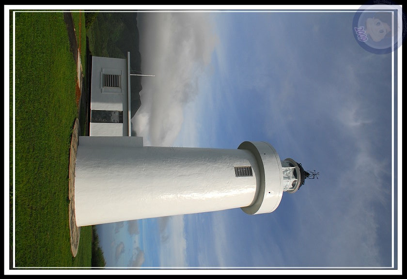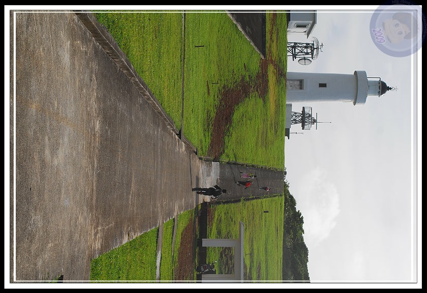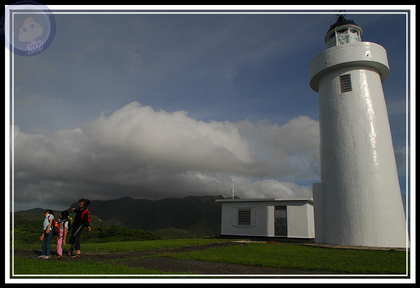 蘭嶼燈塔位於島北的山頂上,建於民國71年,且號稱「全國海拔最高的燈塔」。與台灣地區的燈塔相同,塔身與周邊的建築都塗上純白。來的時候大門敞開,孩子們飛快地衝向斜坡上的燈塔。大人們慢了一步,旁邊的小屋子走出了位先生與同伴說幾句話,我還以為他要說這裡開放觀光,拼命揮手召喚已經頂著強風到坡上的孩子。回頭詢問,原來那先生是說:「不怕強風就去吧!」