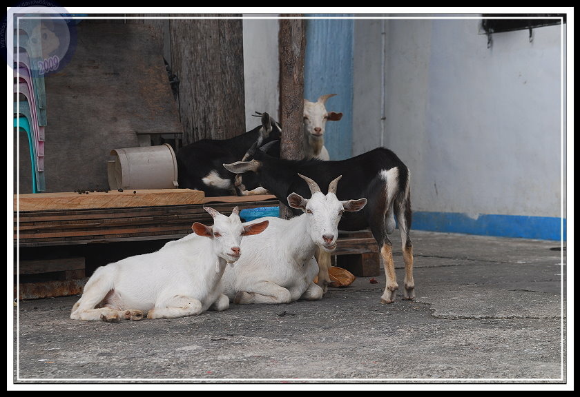 蘭嶼的羊是財富的象徵,但他們不圈養,放任羊群滿山遍野地跑。蘭嶼的羊會過馬路,當觀光客的機車呼嘯而至會停、看、聽,遠遠地躲著,站在消波塊、岩壁上,偶爾有幾隻會路經部落,但總與人保持距離,閃著相機鏡頭。傍晚天色漸暗,羊會聚集回羊寮,沒地方去的就安安靜靜的集合在部落外。