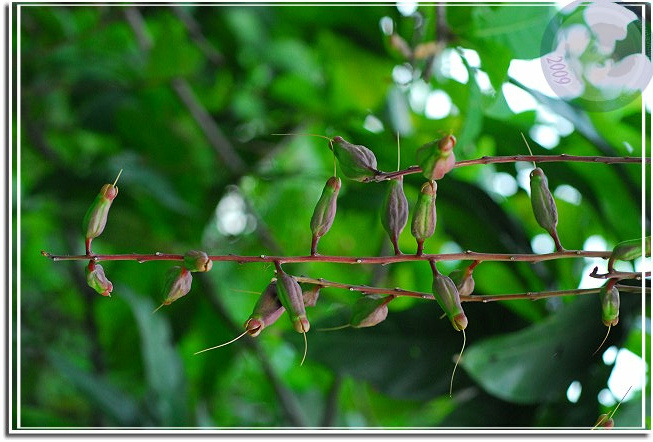 這是科博館植物園的穗花棋盤腳,兒子尚未出生前曾經在墾丁撿到它的果實,有稜有角...有人說像棋盤的腳,我卻怎麼看都覺得像粽子。那果實乾了之後成土黃色,重量輕與碩大的個頭有點不相襯,應該也是為了飄洋過海作準備吧。
