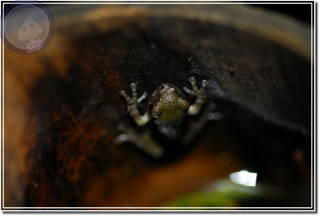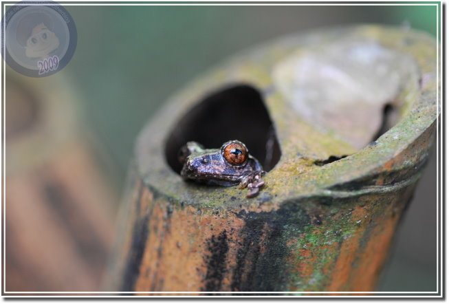 曾經繞了大半夜還是找不到艾氏樹蛙的蹤影,前幾年溪頭森林遊樂裡的竹籬笆年久失修,蓄不了水,連帶的據說是當地特產的艾氏樹蛙也變少了。溪頭雖然不乏孟宗竹林,不過葉子鑽進竹林找樹蛙是需要一點勇氣,尤其竹葉蓋住地表,你永遠不知道葉子底下有沒有洞?更猜不透洞裡會有什麼?