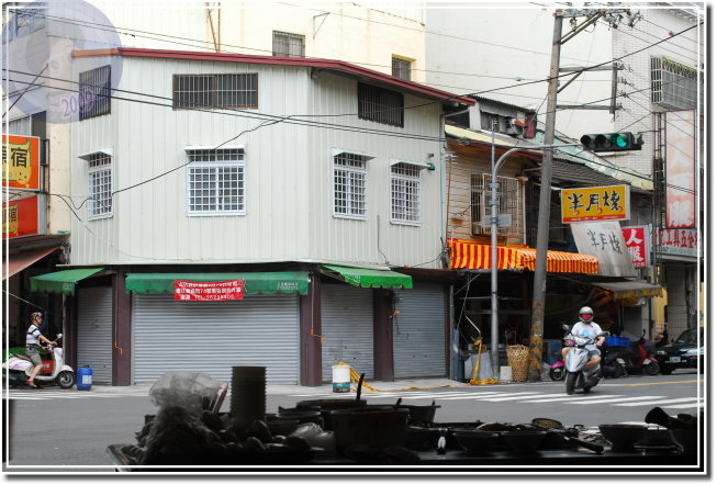 坐在金樹肉丸點店裡,因為小蘭靠在騎樓的柱子上,今天換個方向朝外,看著肉丸店的店員忙進忙出,就是不端我的過來。忽然發現對面的豐仁冰房子不見了,換了一棟黃色鐵皮屋子。有一晚也是來吃肉丸,站在騎樓下看對面,轉角木造房子加上騎樓水果攤熱吱吱的強力燈泡,忍不住拍了一張照片,也許這可以當創作參考,怎知竟然成為絕響。