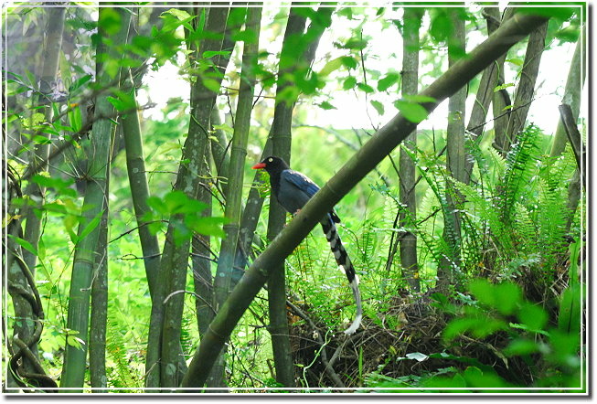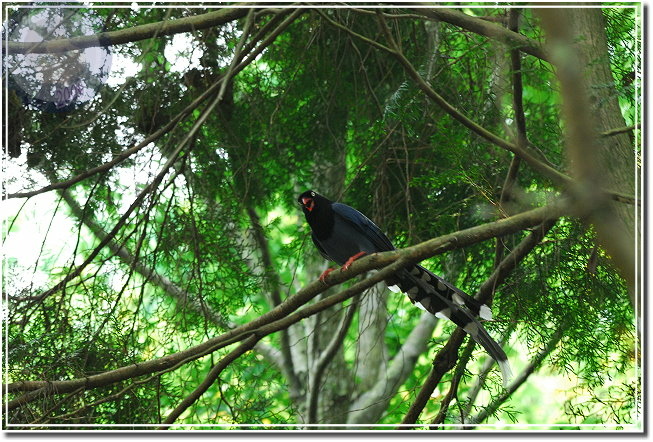 台灣藍鵲是台灣特有種,鴉科的保育類動物,美麗的身影就穿梭在海拔1200公尺的山區。藍鵲與樹鵲類似,有家族共同生活的習性,所以只要發現一隻,仔細地觀察都可以發現附近必然還有其他個體活動,而藍鵲前一季所育之成鳥還會幫助親鳥育雛。台灣藍鵲堪稱國鳥,但最近發現野逸的中國藍鵲有與台灣蘭卻雜交之危機,保育單位也以「移除」的方式維護台灣藍鵲之血統。說來這又是典型的外來種入侵危機。(中國藍鵲的後頸部、下腹部為白色,台灣藍鵲頭部到頸部為黑色,全身是藍色,僅有尾羽是白色。)