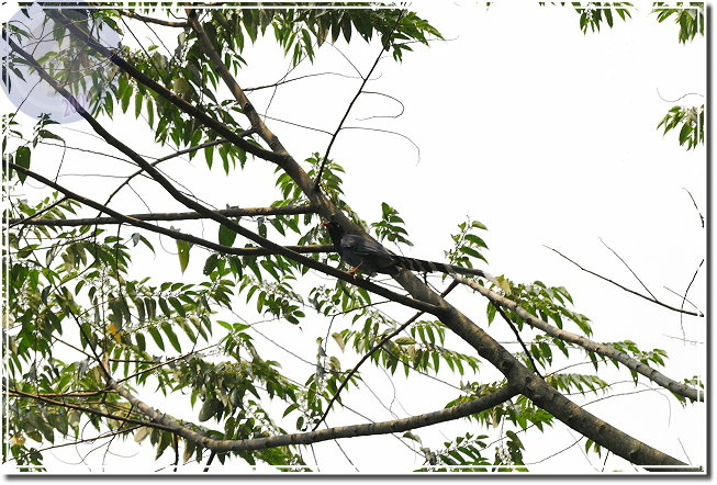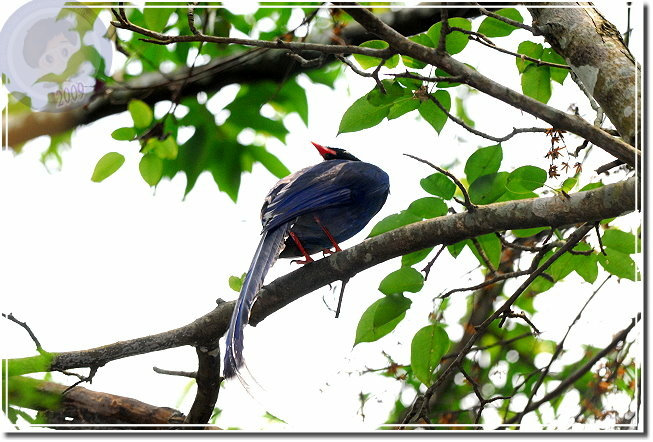 約莫一個月前,在三義山上巧遇台灣藍鵲,一家子飛在高高的桐花與雜木林中,「嘎!嘎!嘎!」地彼此機警地傳遞訊息,我拿著200mm根本就搆不著,同時林子光線昏暗,最終只是拍到幾張「藍色幽靈」而已。
