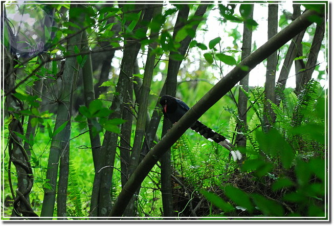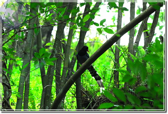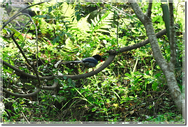 星期天走了一趟八仙山,想在佳保台享受悠閒,才往上走沒多遠就發現「藍色精靈」了:她張開翅膀滑下溪谷消失得無影無蹤。站在步道邊張望許久,就是遍尋不著。再往上幾階,拍完推糞金龜,忽然幾隻台灣藍鵲就在低矮的林子裡穿梭。躡手躡腳接近,這裡的台灣藍鵲大概比較習慣帶著帽子、拿著相機的無聊男子,我竟然可以欺近到相當的距離,真像是土肉桂說的:這公關來招呼客人了?這裡的林蔭地下鋪滿殘枝落葉,穿著郊山鞋闖進真是忐忑,生恐一不小心招惹了地頭蛇,可是又忍不住忙往樹上盯,擔心一轉眼台灣藍鵲又要無影無蹤了。大概就像網友們說的,台灣藍鵲越來越不害怕人類了,竹林裡那隻就在我不斷靠近下仍然下地覓食,一副「你抓不到」的模樣。