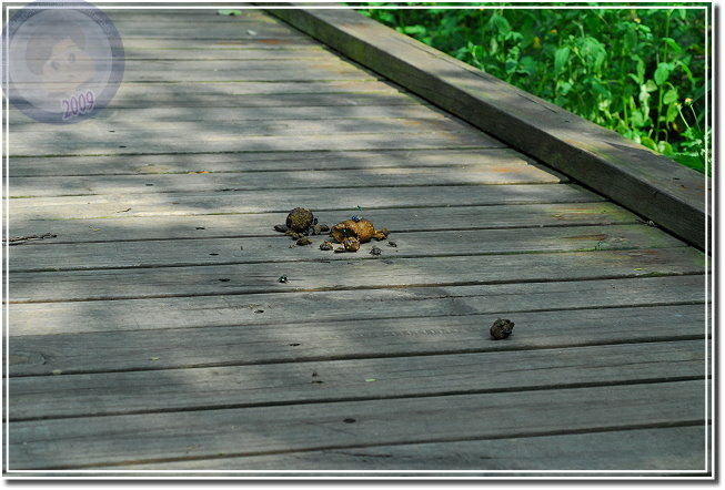 精采的一沱...一沱什麼?當然是「黃金」。狗屎人人厭,前幾天社區開管委會,還有鄰居特地為了社區中庭出現狗屎而提案,要求在會議紀錄列入宣導事項。但是,在八仙山森林遊樂區的木頭棧道上出現狗屎卻令人興奮,當然不是因為喜歡森林而「愛屋及烏」,而是一沱黃金在此地能夠吸引一些不容易看見的昆蟲。
