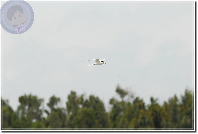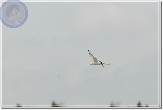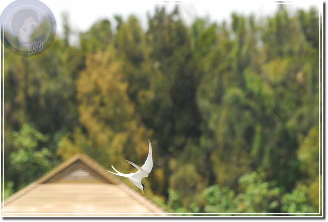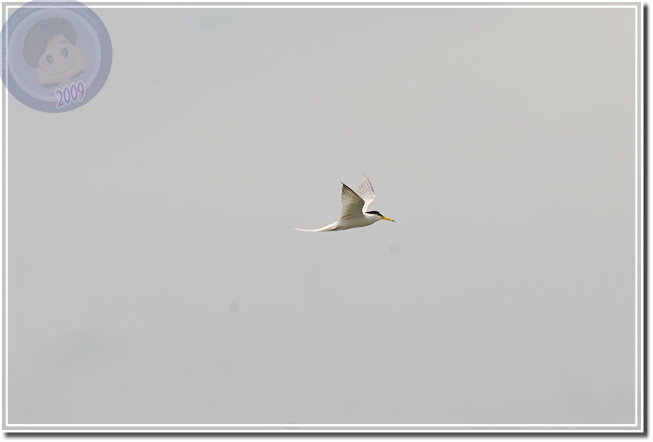 小燕鷗是普遍的夏候鳥,照片裡也己經換上夏羽:頭部頂著黑色到頭後端,額頭留白,眼睛因為隱藏在黑帶之中不易發現。