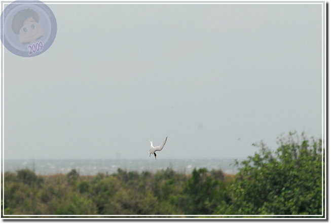我停下來拍她們,卻一下子順風飛到長水灘的下風端去,本來以為小燕鷗是為了躲避我,仔細一瞧,他們又從那邊慢慢地一飛一鑽地前進,兩三次之後就又到我眼前。原來,風吹的方向湊巧與長水灘的長邊大致吻合,他們頂風前進,大概三次就到底,若是想覓食就必須讓風吹回去,想原地捕食,恐怕要花不少力氣在定位上,這對野生動物來說實在不符合能量消耗的原則。