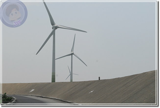 大安頂龜殼一帶也林立數十支風車,隸屬德商英華威公司所有。最近英華威公司出了新聞上電視,因為再生能源法遲遲無法過關,所以準備撤資。當然是不是真的會撤資?還是商業手段表態?不得而知。近觀風車,呼呼作響,若是靜靜地看著,葉片彷彿如巨人手中的巨釜急急劈下,讓人反射般地閃躲。