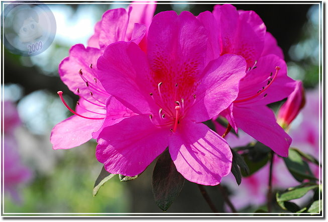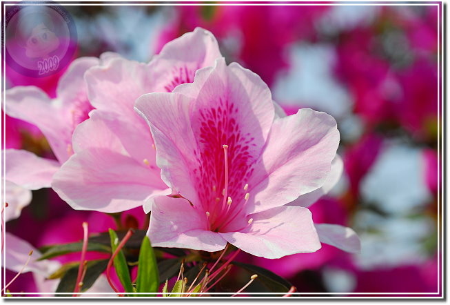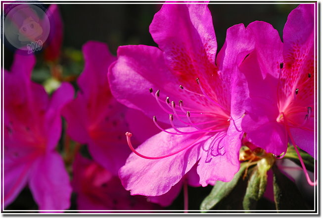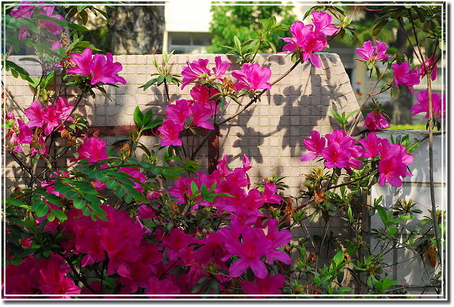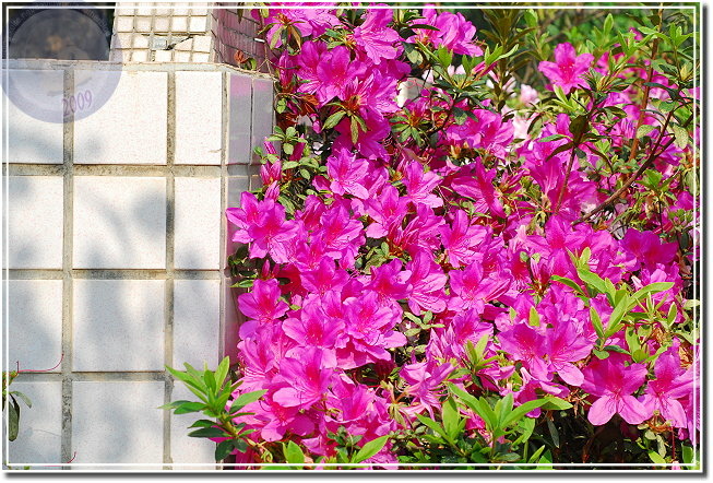 花大開後,雨卻接著來了。雖然沒大到將花摧殘,卻讓細緻花瓣因含水而發黃。反覆地晴雨交替,始終沒等到足夠讓杜鵑花重振旗鼓的陽光。終於,鋒面過了,即使再有也只是降下溫度,讓杜鵑花得以喘息。趁著上午陽光精神,拿著照相機牆裡牆外走一圈,雖然平地的杜鵑花不是什麼新聞,不過...真的「數大便是美」。感謝前人的真知灼見...。