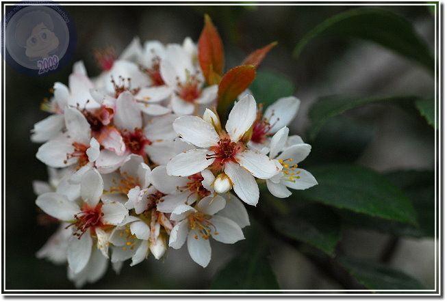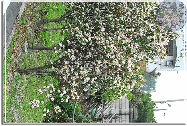 車子疾馳而過,一晃眼有點像狀元紅開花,花多得有點過分,所以特地停下來拍張照片...原來是「田代氏石斑木」...沒聽過。