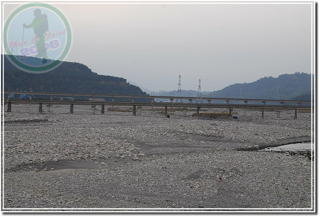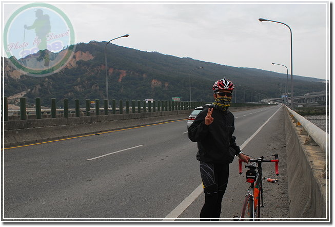 沿著中社社區,一路施工讓我們閃閃躲躲。路已經被封得夠窄,工人還不時在圍籬外背對著馬路活動,讓我們又要注意後方來車又要留心工人會不會一不小心就撞到身上來。上到大安溪橋風更大了,時而由前方來時而又側面襲擊。橋面緩緩上升連接著伯公坑,一直到對岸山頂實在看不見哪裡是終點。我們走台13線新近完工的高架橋,如果下到鯉魚村走原省道大概就必須「下車戰鬥」了。橋上,無論砂石車或小型車無不卯足全力地爬,而騎公路車的同事也一溜煙就不見蹤影,留下我邊拍照邊努力向上爬,還得同時對抗由坡頂瘋狂向下壓的氣流,心裡直想:這會長也真是的,選日子不是選了下雨天,就是選到這又冷又刮風的日子。