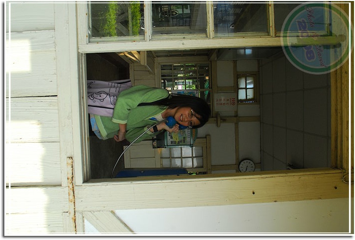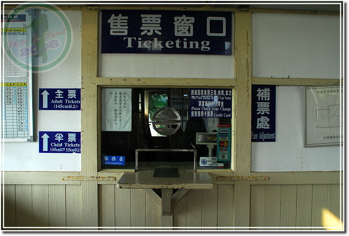 新埔車站只有站長一人,其餘地區都不設防。我帶著相機就在候車室、天橋、月台鑽進鑽出,站長大人還是在票房裡忙著。這樣也好,帶了兩個小名模,可以一下子當路人甲,一下子假裝打電話,只是演技似乎有待加強。待了好一會兒,秋天午後的陽光實在太美了,把車站硬生生地揉出滿地詩意的影子。最後,我就站在候車室往沙灘望去,海就在窗框裡。難怪站長先生一個人上班也不嫌寂寞,若是我...我也願意。