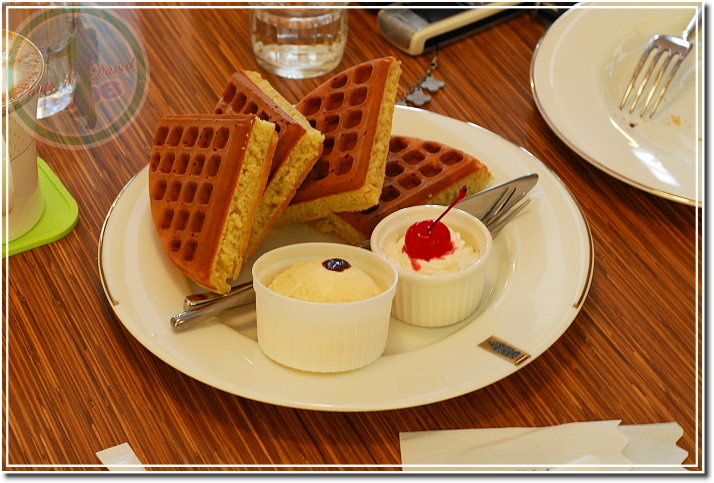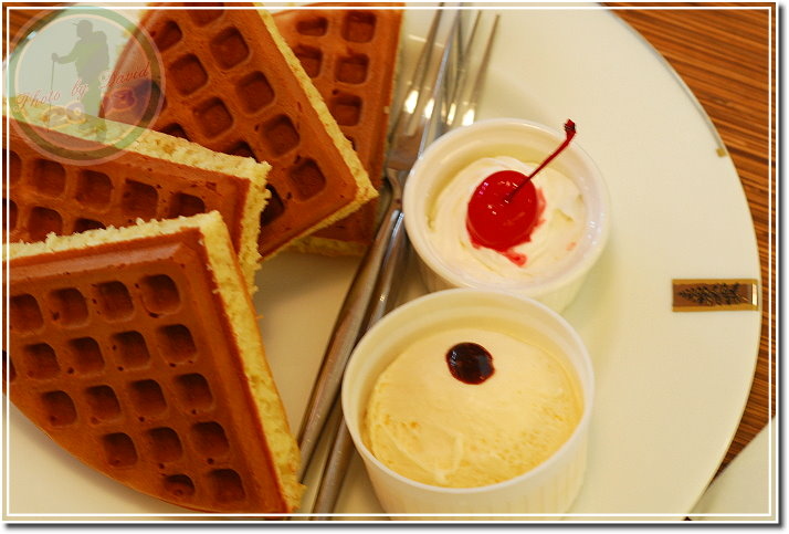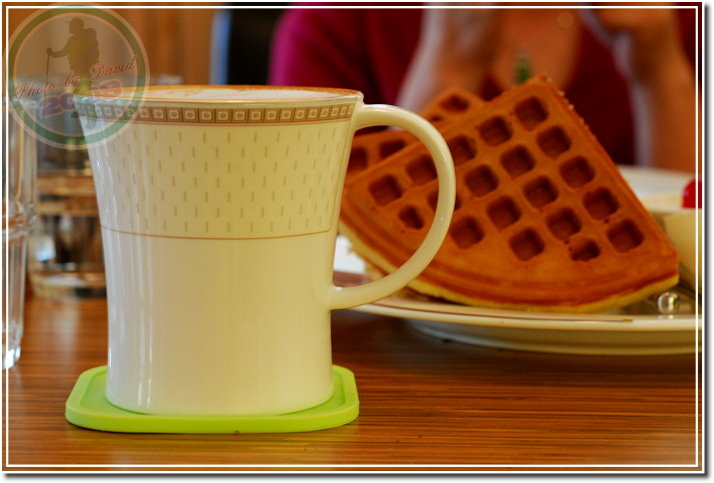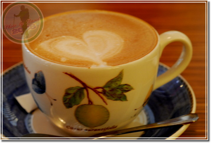 店裡的家具與裝潢簡簡單單,卻用了不少實木,散發悠閒的質感。店中間木格子隔間,既將店區分為內外,又未遮斷視線,維繫住空間的完整。咖啡的拉花與店裡的裝潢恰成呼應的質地....一種精緻,再加上三明治、鬆餅,對兩個人來說有點多了。只是沙發可供慵懶的躺姿,不趕時間就慢慢消化囉。