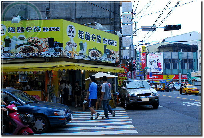 這家「超酷e族」位於東勢鎮豐原客運總站對面,轉角店面,如果想吃完再走就必須坐在騎樓下。對我而言,恰是騎自行車、散步...登山回程的中途站。她的剉冰除了一般可以看到的料外,上頭還會有一球大大的、非常「罪惡」的冰淇淋。如果點的是紅豆牛奶冰...濃濃的煉乳加上冰淇淋...真是...真是...頹廢啊。