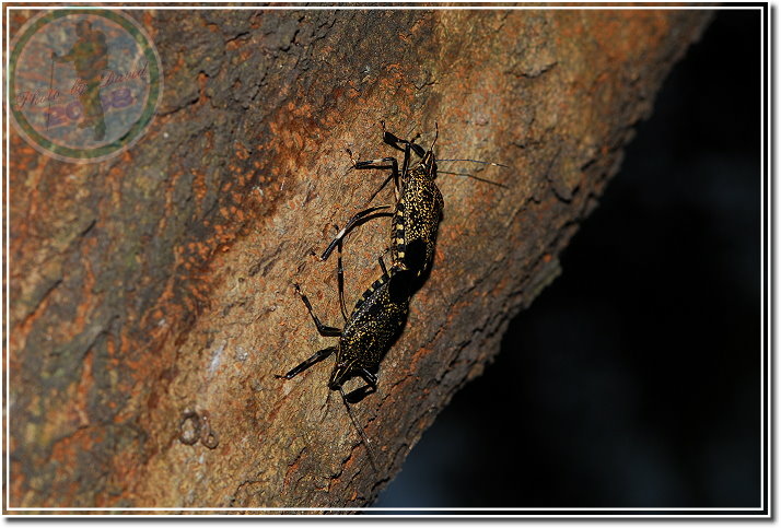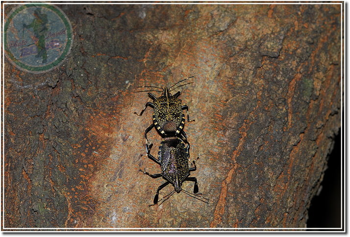 這陣子黃斑椿象大量地出現在腳踏車道的苦楝樹上,或是單獨,或是交配中。當靠近的時候,椿象會由尾部噴出分泌物,據說是臭的,我沒有那種熱忱趴下去聞。黃斑椿象刺吸樹汁、果實,一般認為是農作物的害蟲。