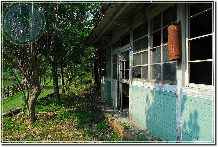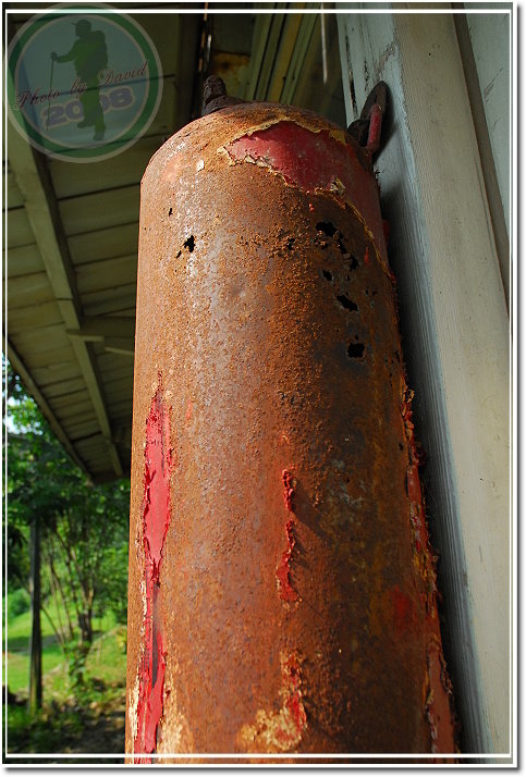 牆上的滅火器是舊泡沫式,使用的時候必須使點蠻力將滅火器整個倒立,力氣小的人還操作不來。滅火器的鋼瓶都已經蝕穿了,可見這裡真的歷史悠久...也被廢棄相當時日。