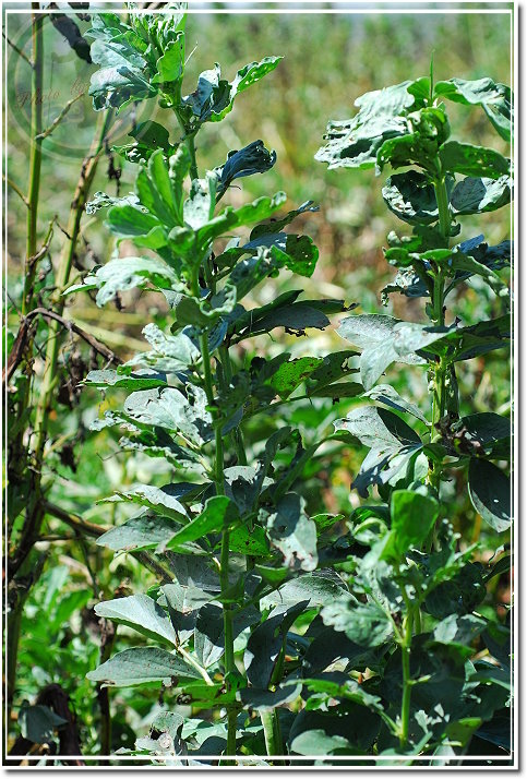 蠶豆是下酒好菜,當茶食勉強可以湊合,只是鹽分很高容易破壞味蕾品嘗好茶的能力。吃過這麼多蠶豆,卻從來沒見過蠶豆長什麼樣子?梅峰農場種了一片,但已經結實纍纍,有些還傾頹枯萎。正在採收的農人們說:雲林北港地區是傳統的栽植地區。但是在梅峰,似乎種什麼都比山下容易,蠶豆每個都飽滿。