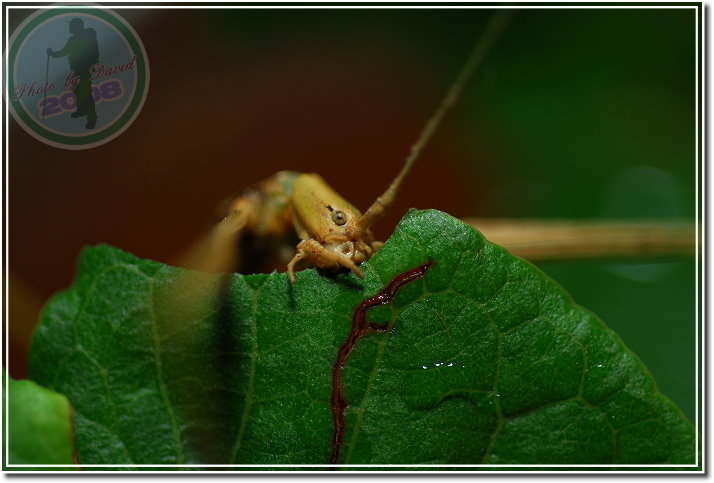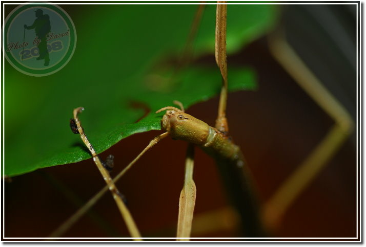 不知道你有沒有這種經驗,站在樹下觀察了半天就是沒發現東西,忽然間像相機對焦一般,眼睛的焦距對了,視界裡多出一隻偽裝得相當好的小蟲。竹節蟲基本上是夜行性昆蟲,因為牠除了身上的特殊氣味與優異的偽裝技巧,實在沒有任何能力抵抗危機。牠們就出現在道路的邊坡上,如果不是其中一隻啃食著葉子而晃動,根本無法在叢生的樹之間發現牠們。