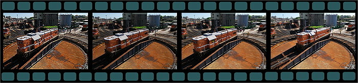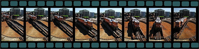彰化扇形車庫應該是研究台灣鐵道機車種類的好所在,各式各樣的機車,幹線用的、調車用的、當古董用的...都一一並列於車庫。而且環著轉車架有20個停車空間,似乎依列車是否進行保養與重要性而分別露天或於車庫內停放。在露天停放場就有 R51 與 S316 停放,因為車庫區並沒有電車線設置,因而電力機車頭一班都停放在車庫外的副線上,只有需要維修的放在車庫裡。