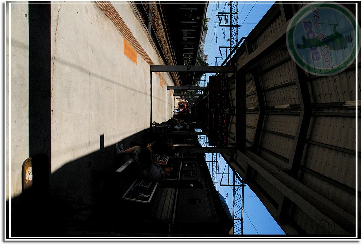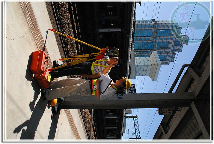 下車就發現這兩位先生正在測量,戴黃帽子的工程師或許發現我胸前掛了不小的相機,並且盯著他們猛瞧,他對我點頭微笑地說明為了將來高鐵停靠苗栗,苗栗車站即將整修改建,而他們正規劃當中。